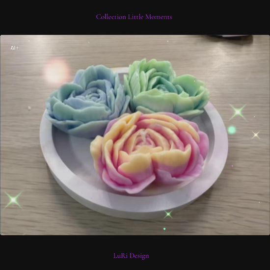 Eine zarte handgemachte Schale aus Gips mit einer großen Blüte aus Sojawachs.