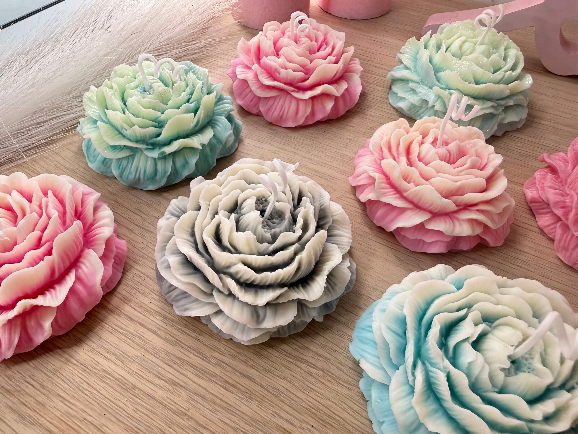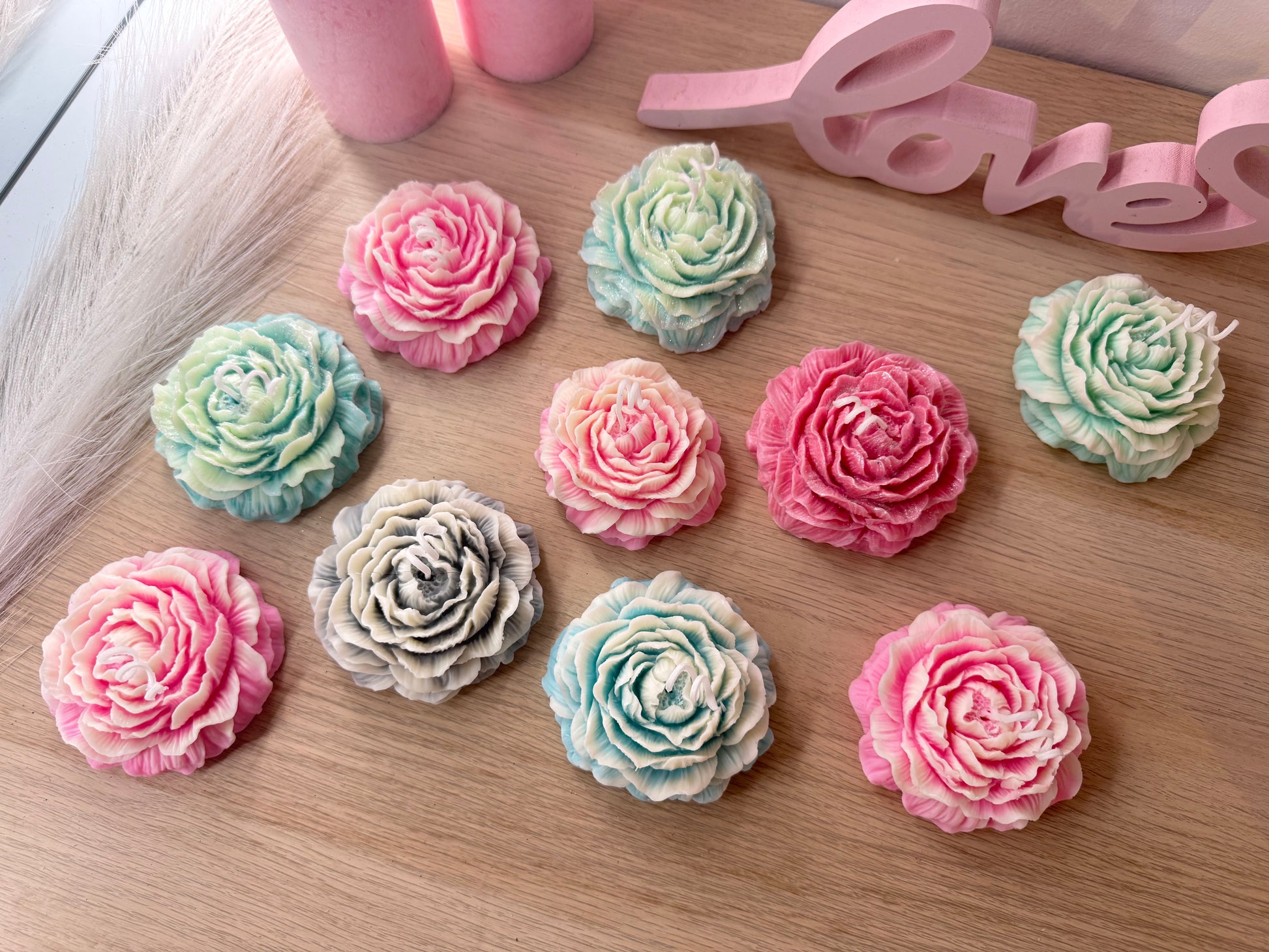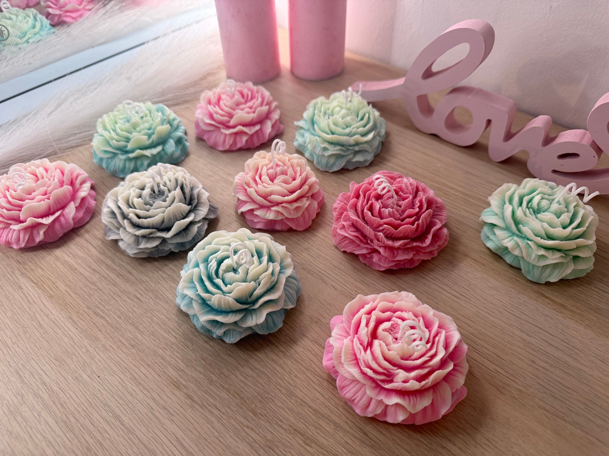 Blütenkerze – handgefertigte Deko-Blume aus Sojawachs in Wunschfarbe ( im Set günstiger)
