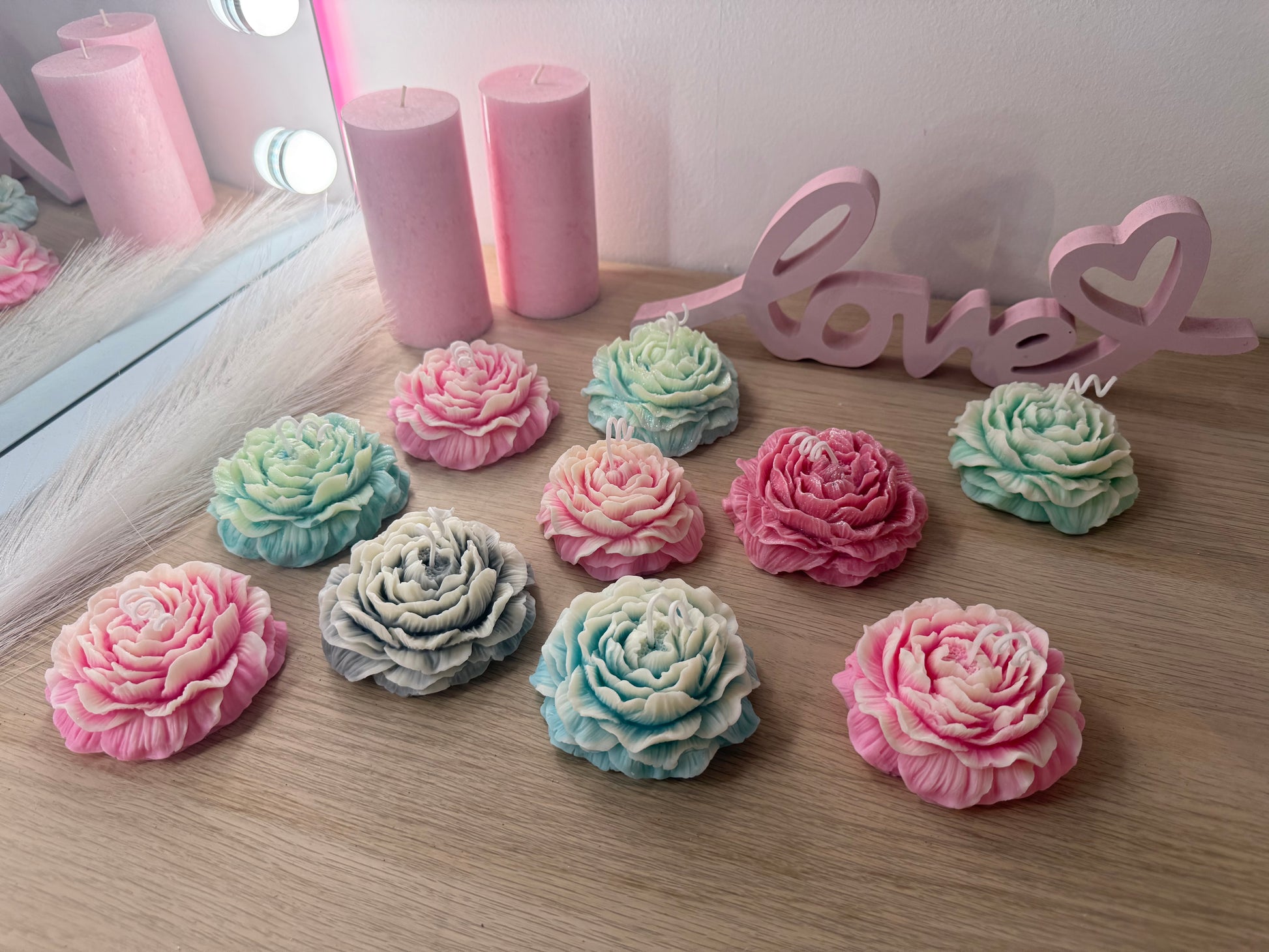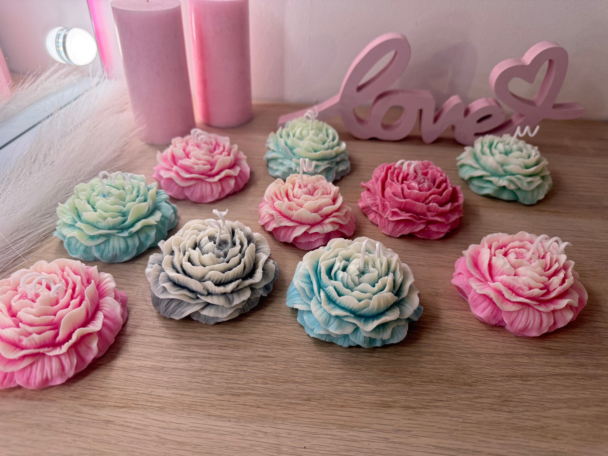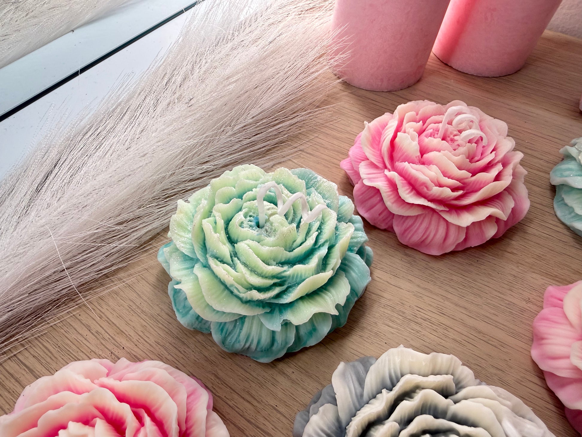 Blütenkerze – handgefertigte Deko-Blume aus Sojawachs in Wunschfarbe ( im Set günstiger)