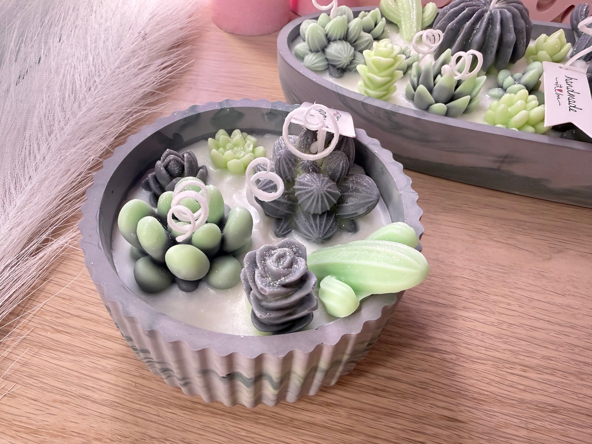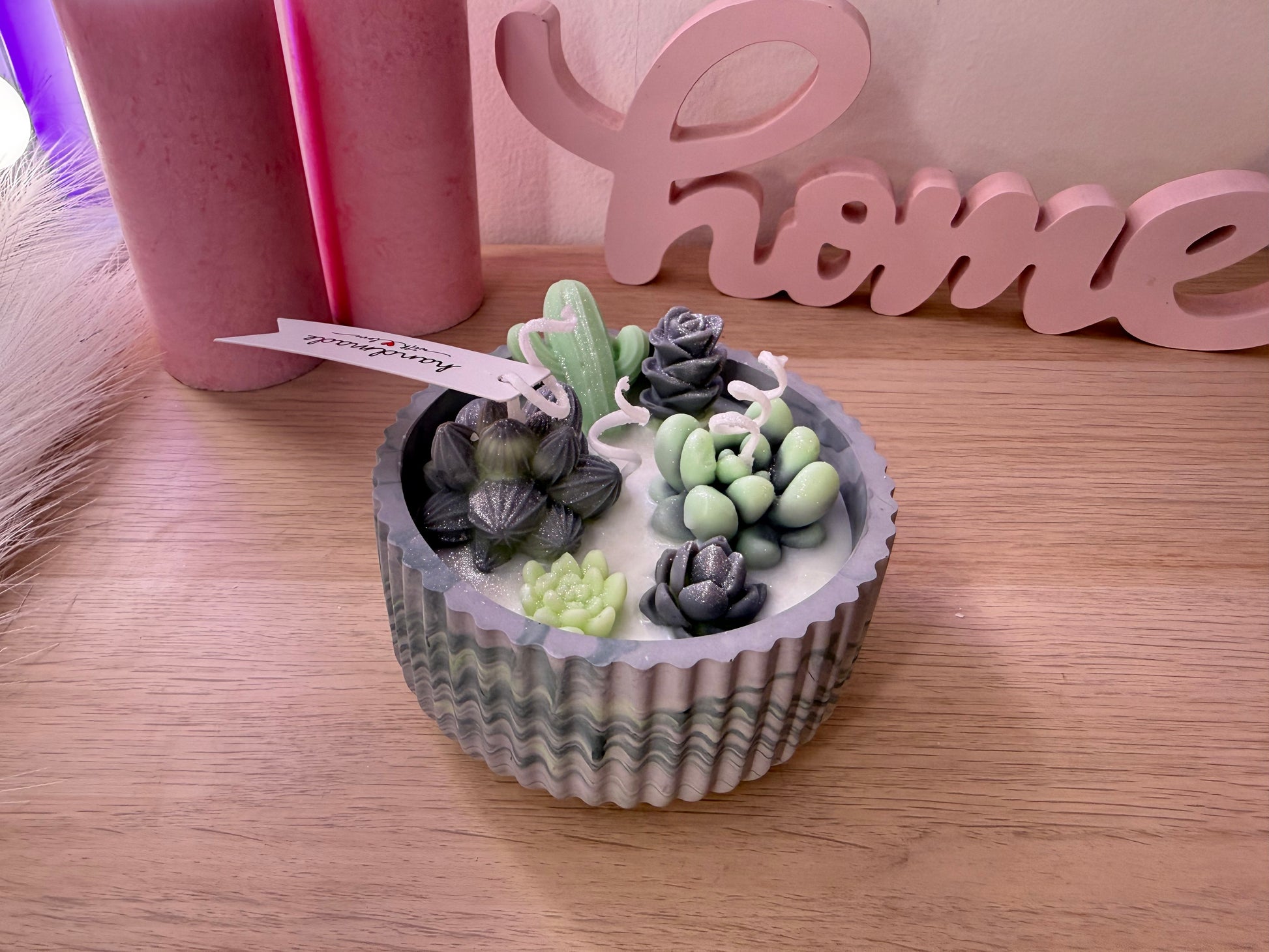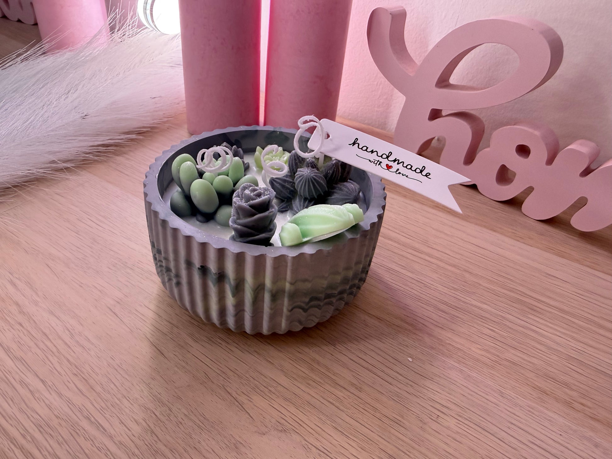 Sukkulenten-Kerzenschale – handgemacht aus Sojawachs | mit Farbwunsch | Geschenkidee