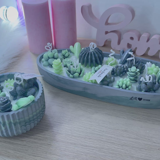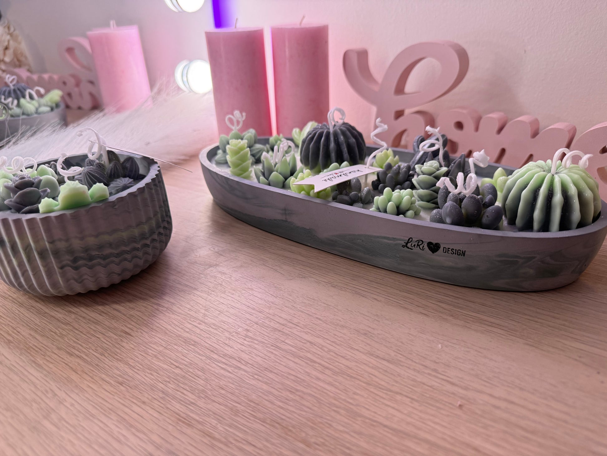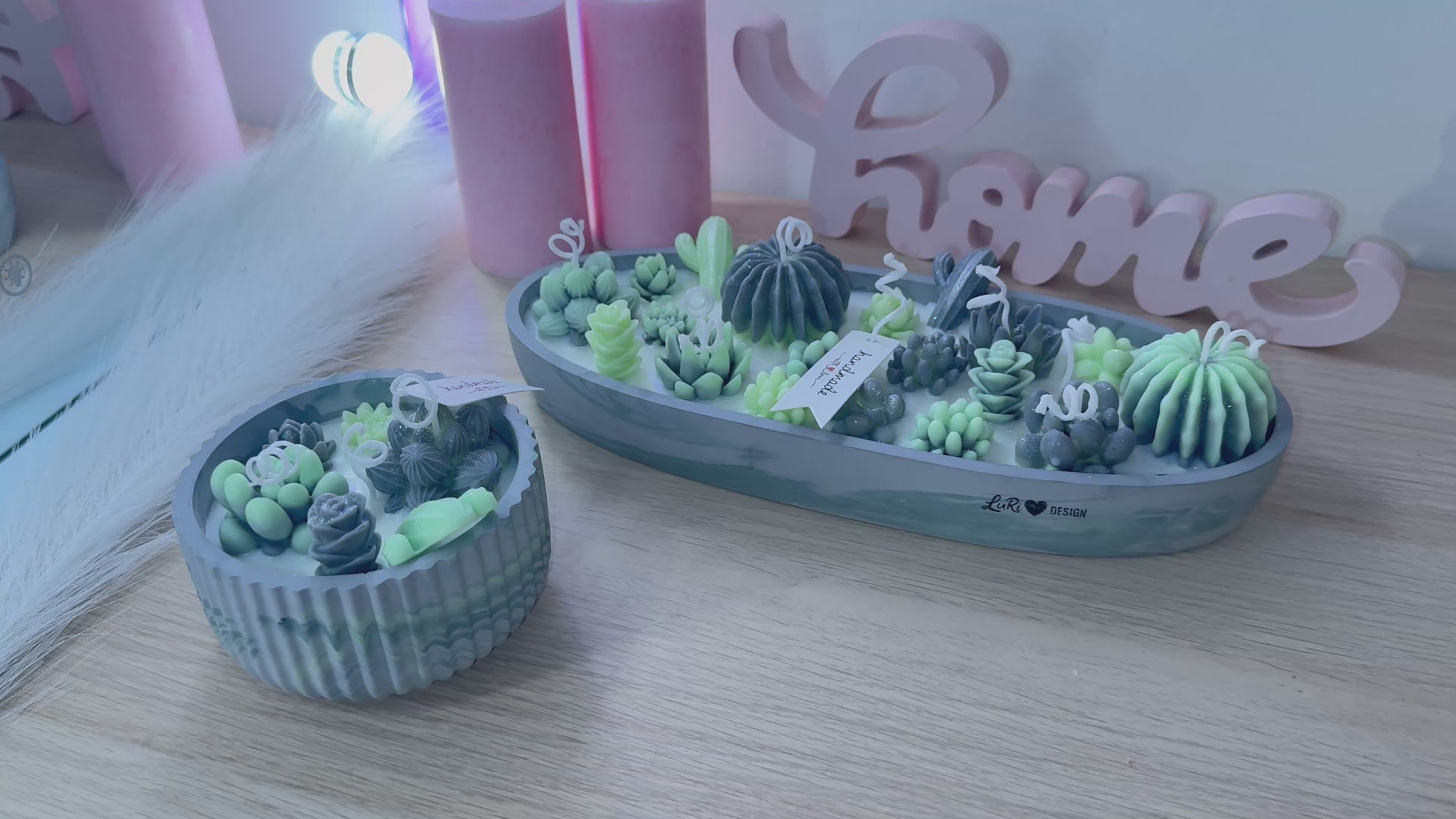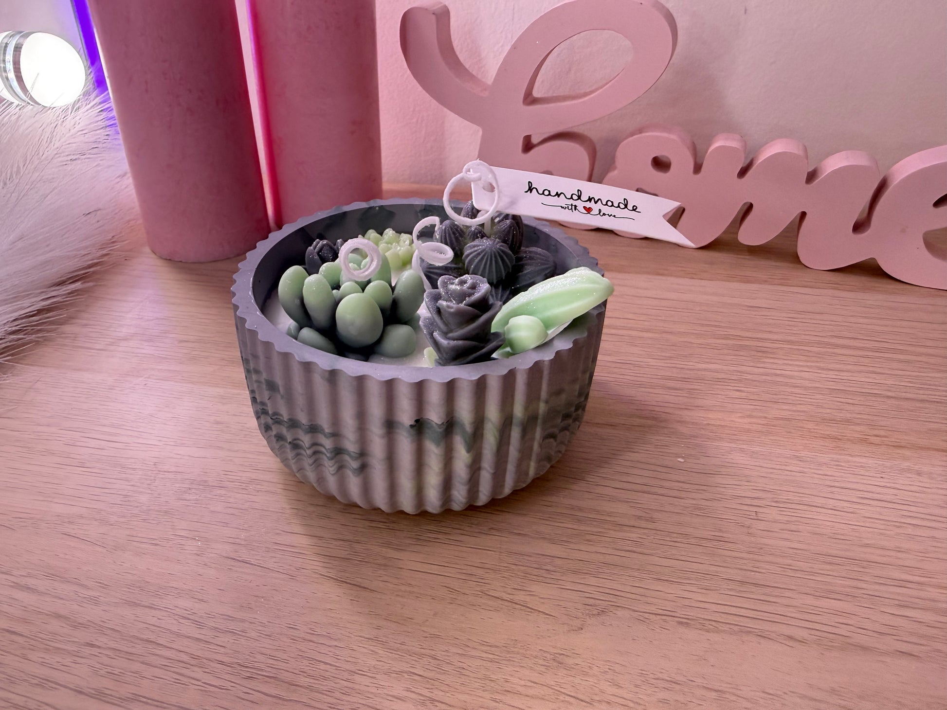 Sukkulenten-Kerzenschale – handgemacht aus Sojawachs | mit Farbwunsch | Geschenkidee